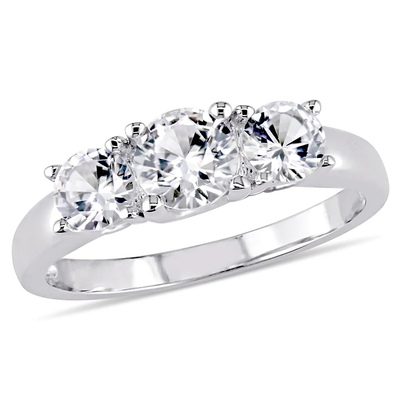 Julianna B 10K White Gold Created White Sapphire Three-Stone Engagement Ring