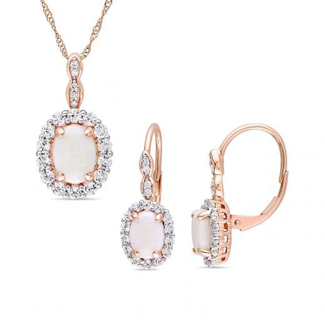 Julianna B 14K Rose Gold Diamond Opal & White Topaz Earrings and Pendant Set