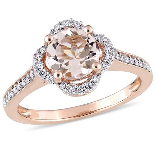 Julianna B 10K Rose Gold Morganite & Diamond Halo Ring
