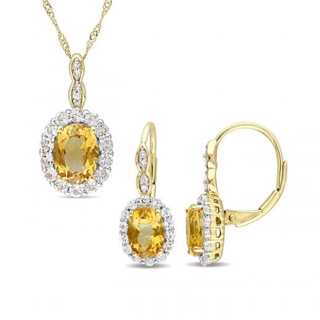 Julianna B 14K Yellow Gold Diamond Citrine & White Topaz Earrings & Pendant Set