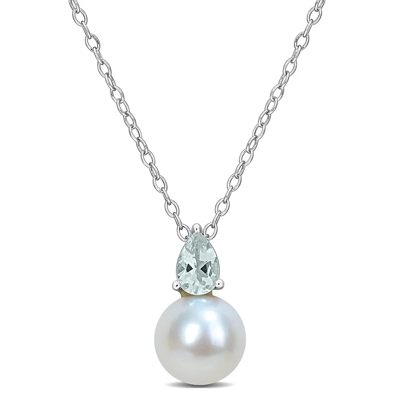 Julianna B Sterling Silver Aquamarine & 8.5-9MM Pearl Pendant