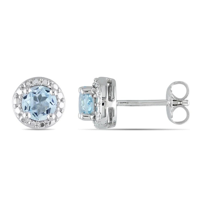 Julianna B Sterling Silver Blue Topaz Halo Stud Earrings