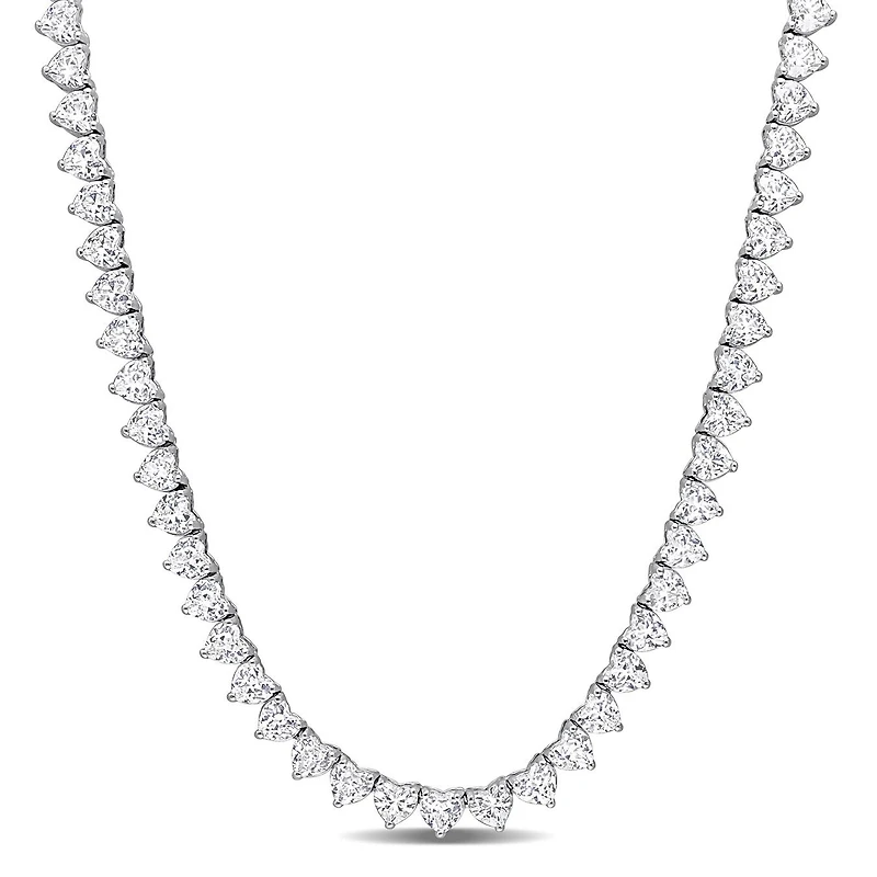 If you love collecting premium jewelry, then this opulent Tennis Necklace is for you. Crafted in sparkling sterling silver, this sumptuous necklace showcases 103 heart-cut created white sapphire gemstones (4x4mm). Enhanced with a high polished finish, this ravishing necklace is suspended on an 18-inch round cable chain and secured with tongue and groove clasp. A perfect gift for the special someone.