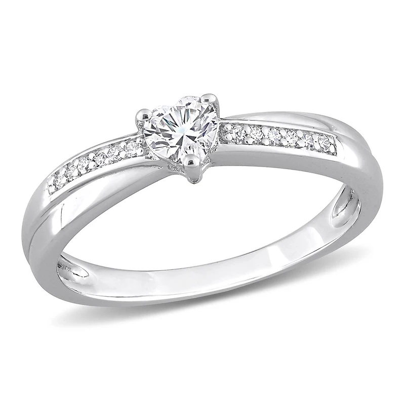 Celebrate your love with this 1/4ct TGW Created White Sapphire and Diamond Accent Heart Ring. Crafted in sterling silver, the ring features a sparkling created white sapphire centerpiece, beautifully accented by diamonds along the band. The delicate heart design adds a romantic touch, making this ring a perfect symbol of your affection. Elegant and timeless, it is an ideal choice for engagements or special occasions.