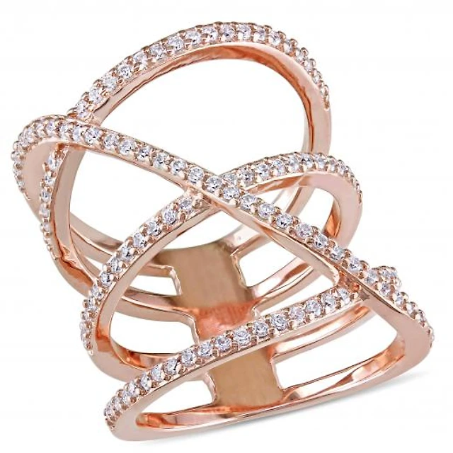 Julianna B Sterling Silver Cubic Zirconia Crisscross Ring