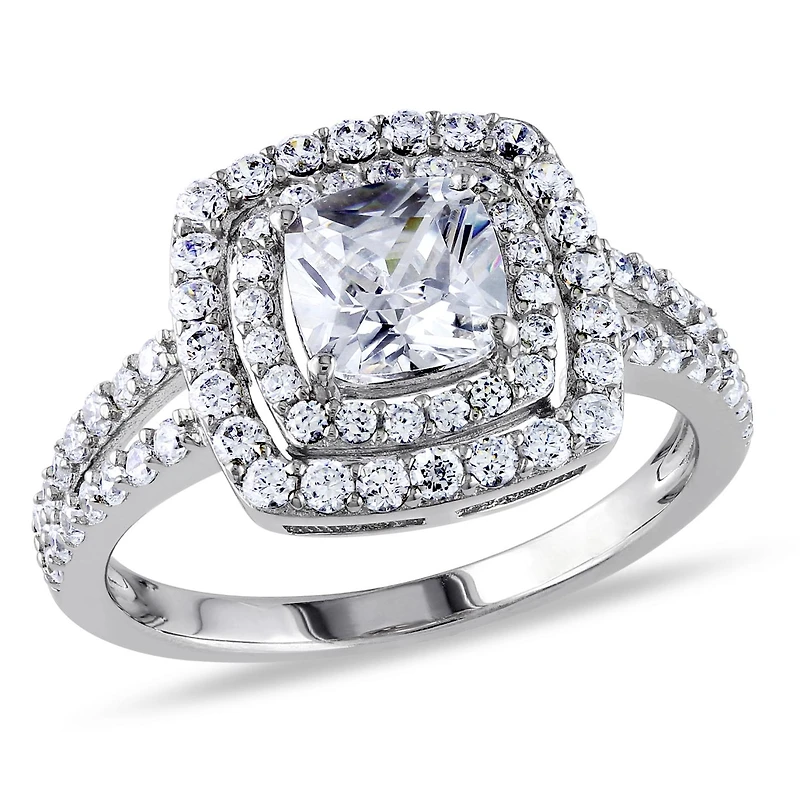 Julianna B Sterling Silver Double Halo Cubic Zirconia Engagement Ring