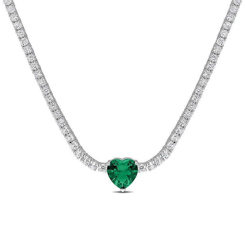 This appealing heart necklace is crafted in lustrous sterling silver. This enchanting necklace showcases a heart-cut, green cubic zirconia gemstone at the center with 165 round-cut, created white sapphire gemstones placed on the sides. Polished to a brilliant shine, this charming 18-inch necklace will make you the new style icon. Trend on Instagram with your striking style statement.