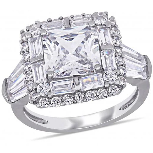 Julianna B Sterling Silver Halo Radiant Cubic Zirconia Engagement Ring