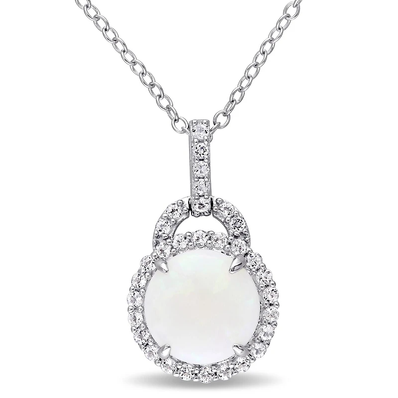 Present your loved one with this necklace from the Collection which features a round-cut opal and white topaz gemstones set in sterling silver. This remarkable pendant is hung on a cable chain and is secured with a spring ring clasp.