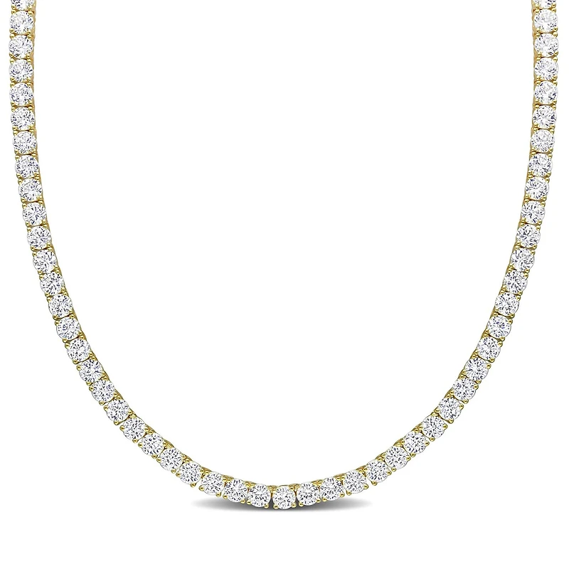 Introducing the Julianna B Yellow Plated Sterling Silver Created White Sapphire 17" Necklace—a captivating blend of sophistication and glamour. Crafted with sterling silver and plated in radiant yellow gold, this necklace exudes a luxurious allure.