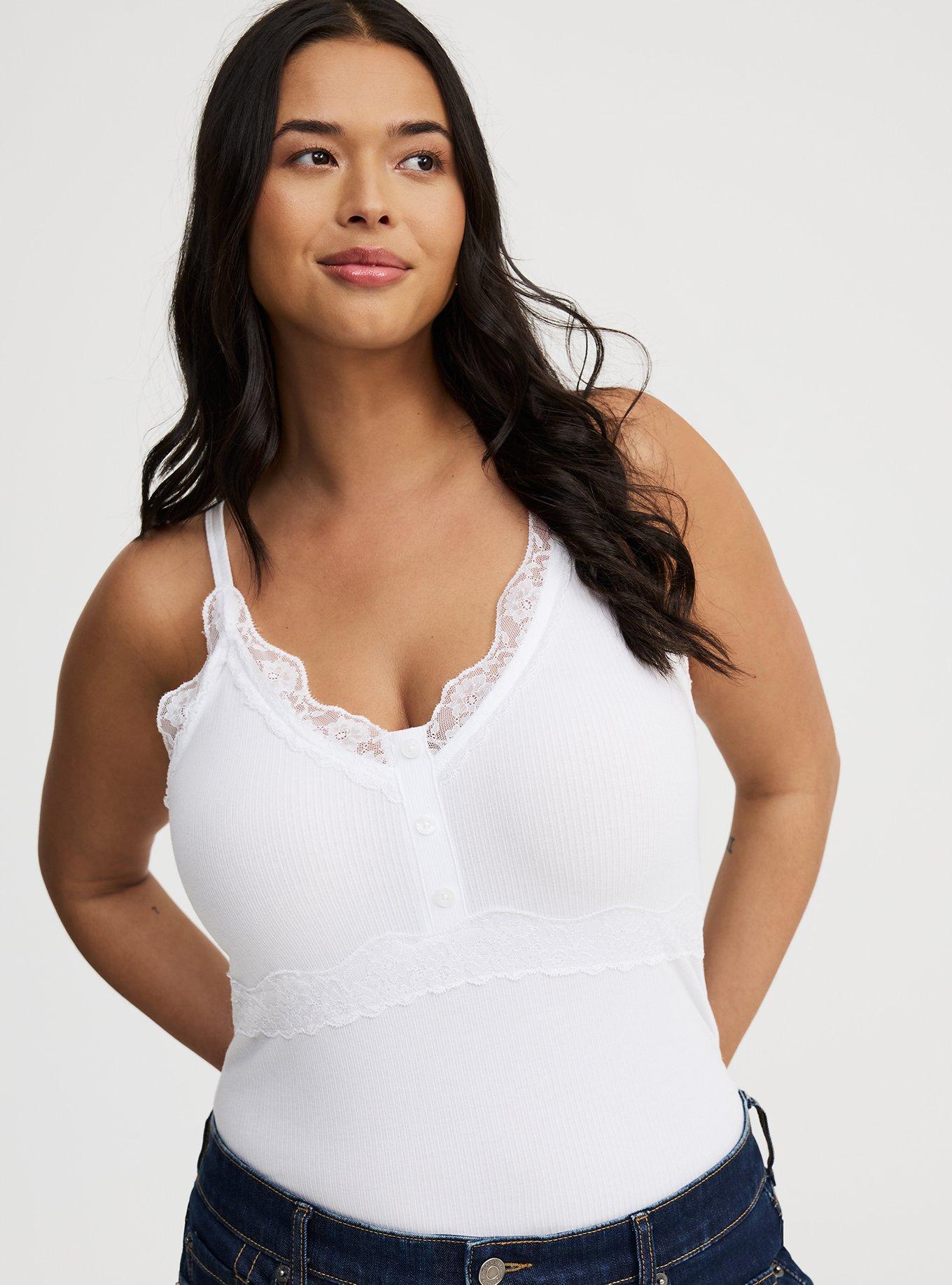 Seamless Ribbed Lace Trim Cami with Built-In Cups