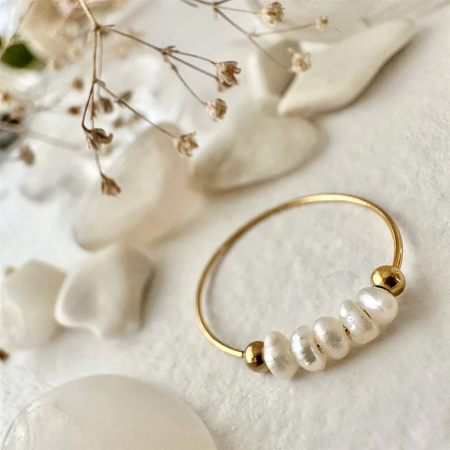 Ardene 8-Pack Mini Pearl Rings in Gold | Size Small
