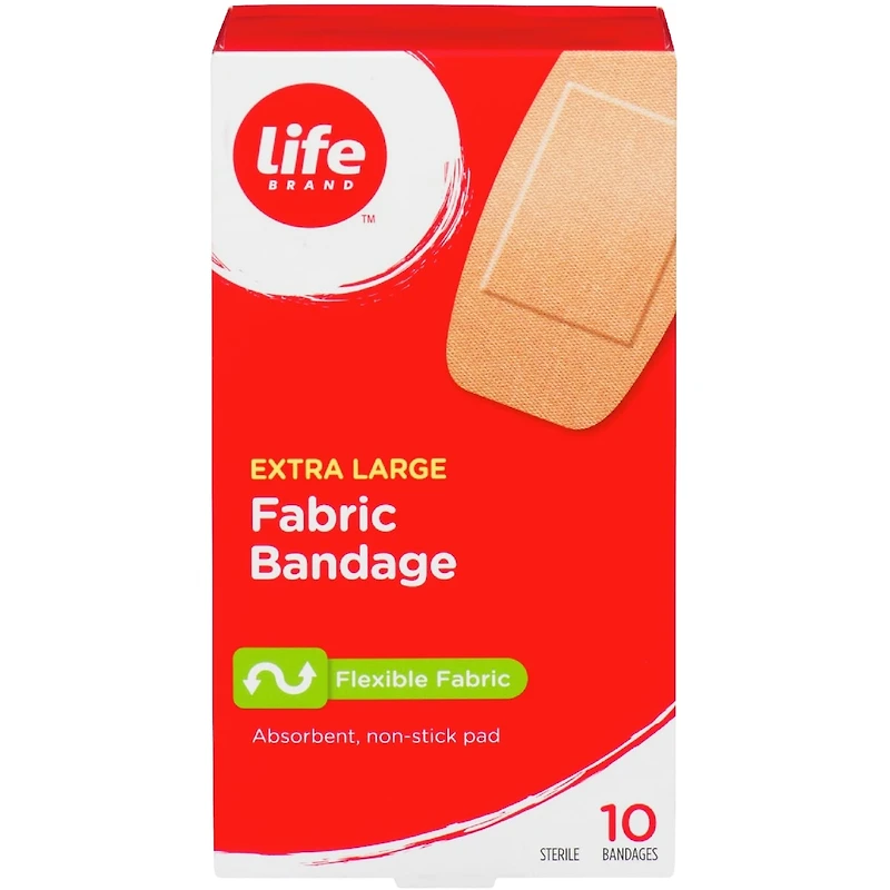 Life Brand Flexible Fabric Bandages in extra-large size are designed to protect larger cuts and scrapes. The flexible fabric construction allows the bandage to move with your skin, providing comfortable and secure protection. The adhesive is formulated to hold firmly in place, ensuring the wound is covered. These bandages are an essential component of any first aid kit.