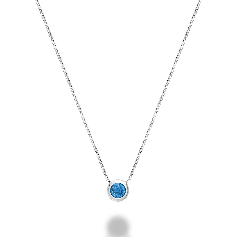 Les Bijoux 10k White Gold Bezel Set Blue Topaz Necklace