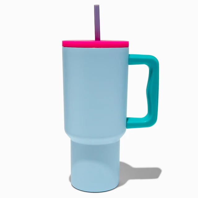 Light Blue Colorblock Stainless Steel Handled Tumbler