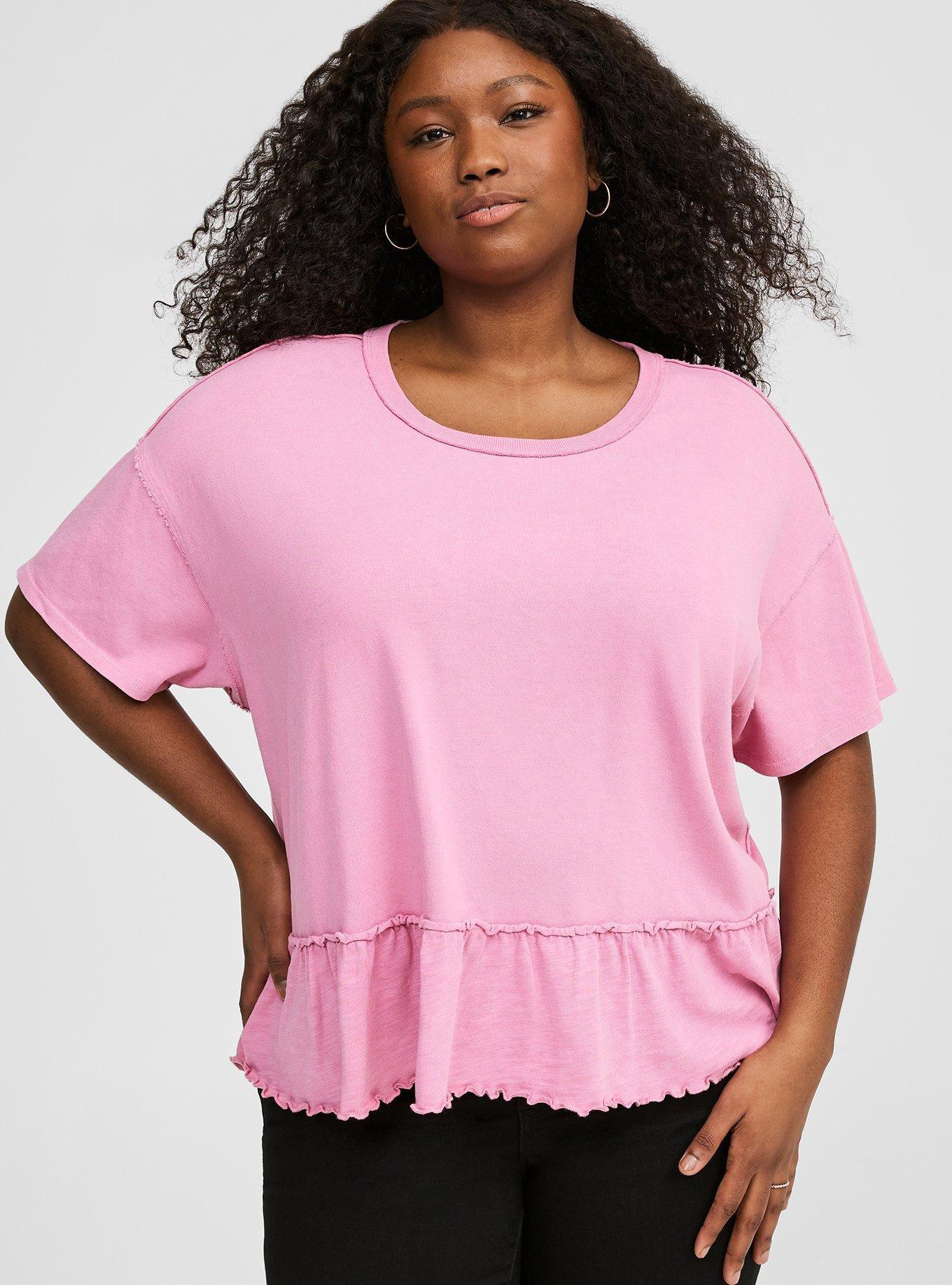 French Terry Crew Neck Raw Edge Ruffle Sweatshirt Tee