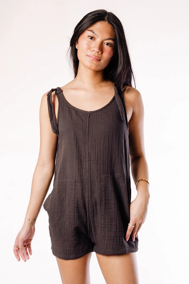 Ardene Ruffle Hem Romper with Removable Straps in Black | Size XS | Rayon