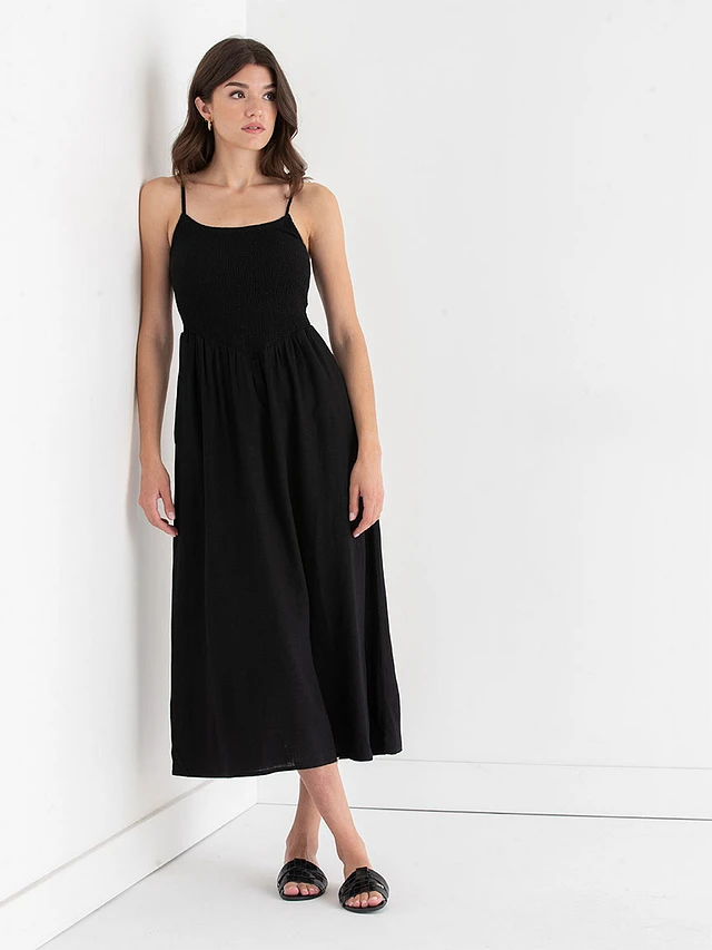 Long Sleeve V-Neck Knee Length Dress With Smocked Bust