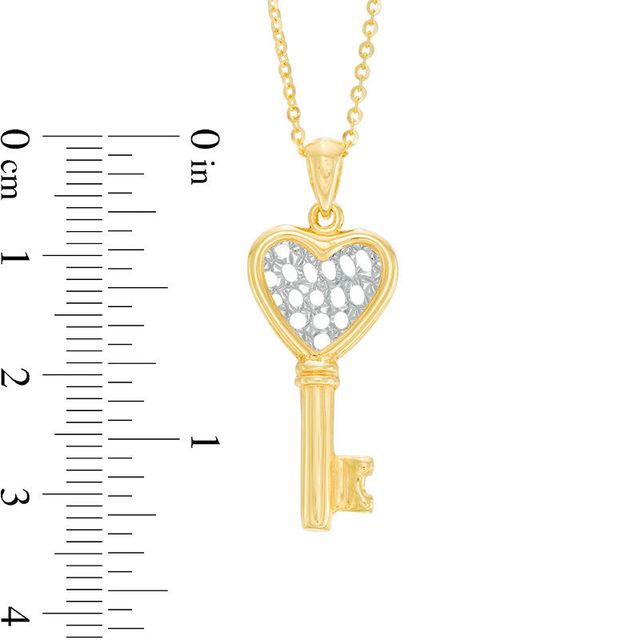 Made in Italy Diamond-Cut Lattice Heart-Top Key Pendant in 10K Two-Tone Gold