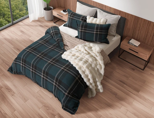 Marlon Plaid Duvet Cover, Cotton, Geometric, Green,
