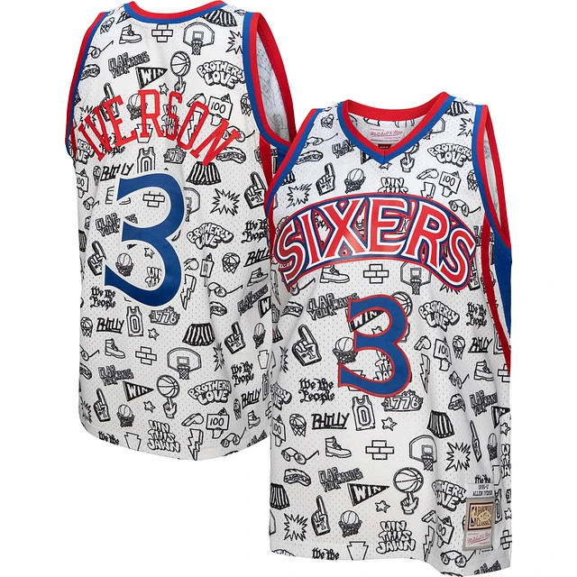 Men's Mitchell & Ness Allen Iverson White Philadelphia 76ers 1996/97 Hardwood Classics Doodle Swingman - Jersey