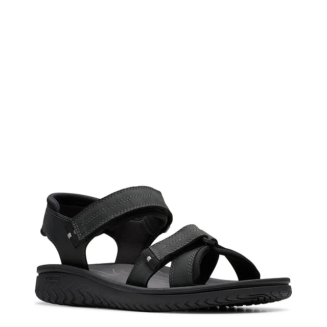 Ardene Man Two-Buckle Sandals For Men in Black | Size 12 | Faux Leather/Faux Suede