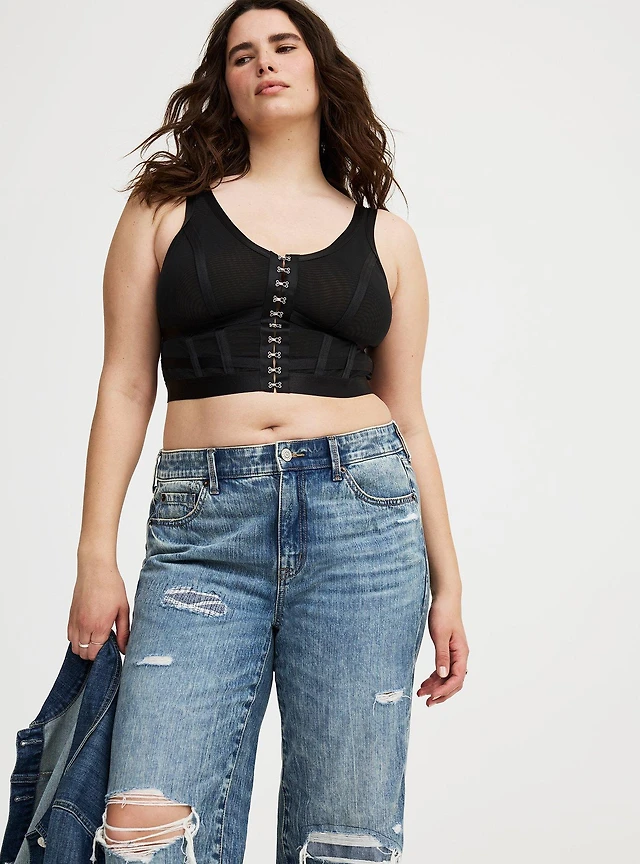 Ardene Mesh & Lace Long Sleeve Bustier Top in | Size | Polyester/Elastane/Polyamide