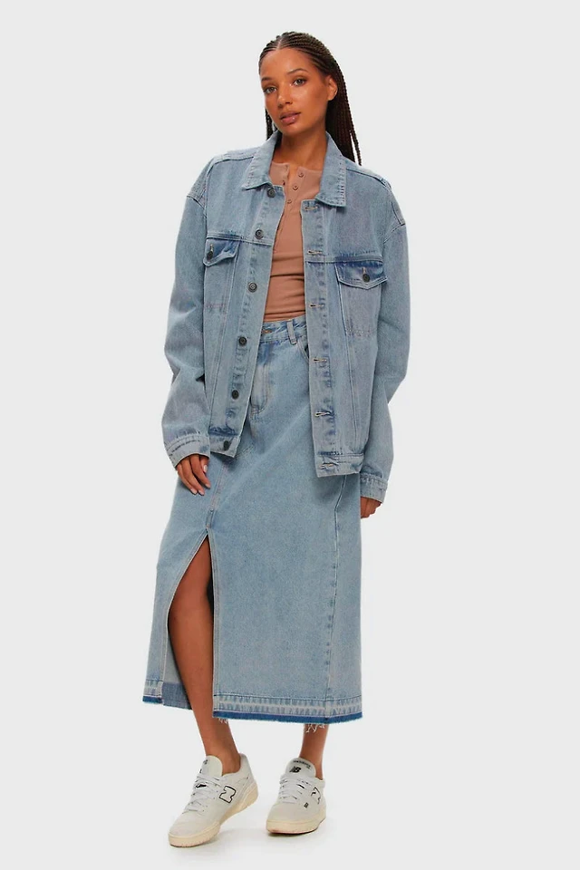 Women's Maxi Denim Skirt with Raw Hem