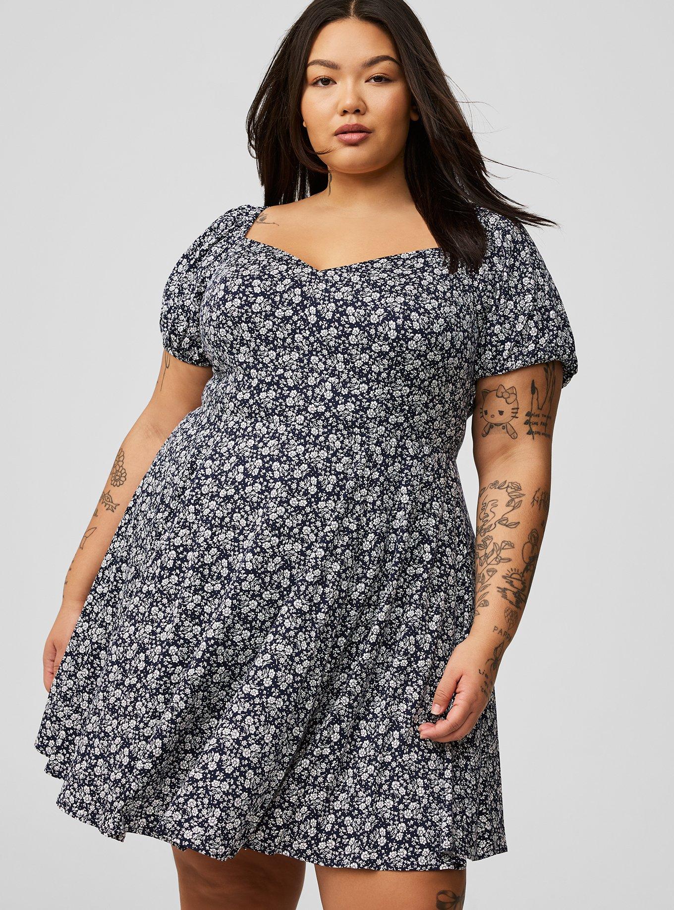 Mini Rayon Slub Pintuck Neck Skater Dress