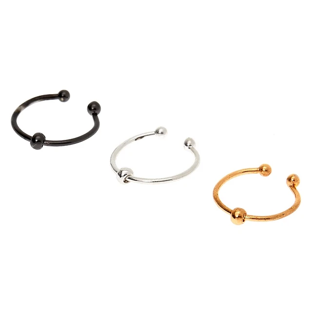 Mixed Metal Beaded Faux Hoop Nose Rings - 3 Pack