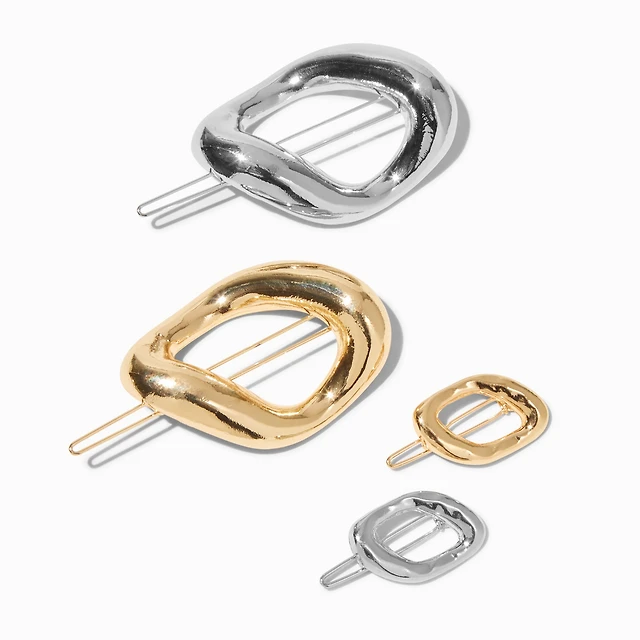Mixed Metal Metallic Oval Hair Pins - 4 Pack