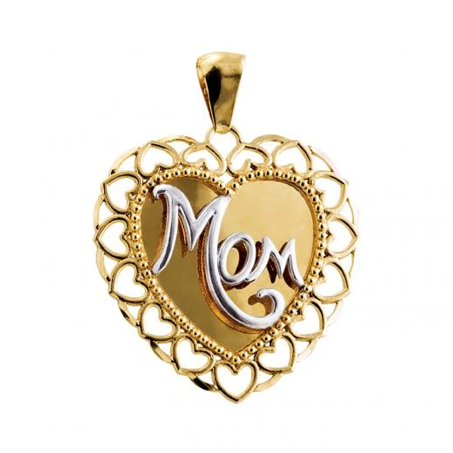 Mother's Love 10K Two-Tone Gold Heart Pendant with Mirror Back