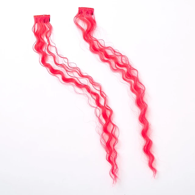Neon Pink Curly Faux Hair Clip In Extensions - 2 Pack