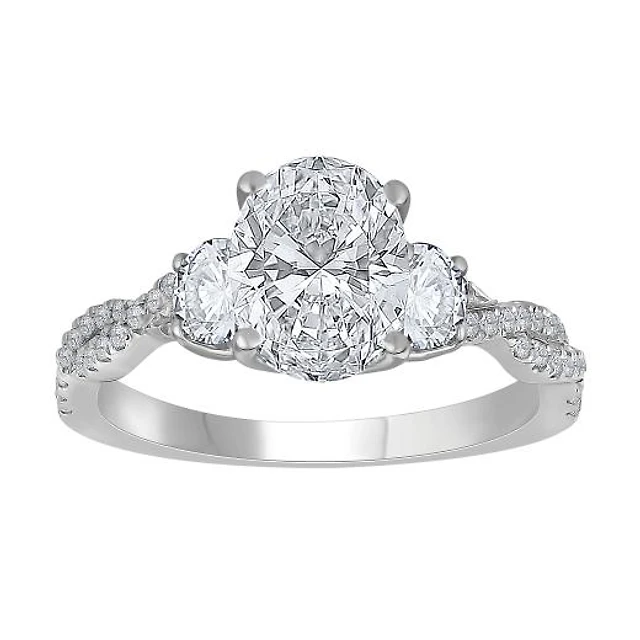 New Brilliance 14K White Gold Lab Grown 2.18CTW Oval Three Stone Diamond Ring