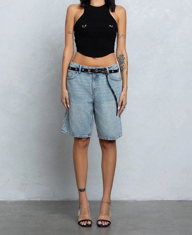 Nipple Ring Ribbed Crop Top