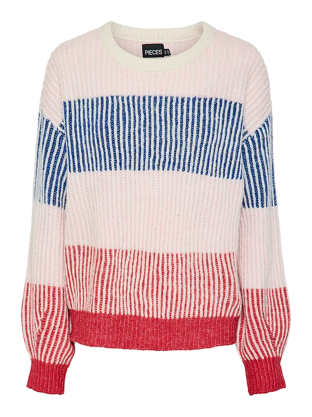 Abstract Scoop-Neck 3/4 Sleeve Sweater with Shirttail Hem