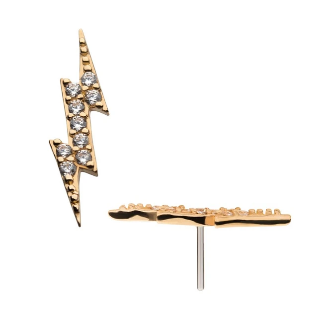 Oro amarillo de 14 quilates sin rosca con juego de puntas CZ Lightning Bolt Top