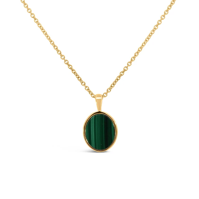 Oval Pendant with Malachite in Gold Plated Sterling Silver