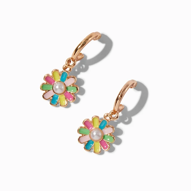 Pastel Pearl Daisy Huggie Hoop Earrings