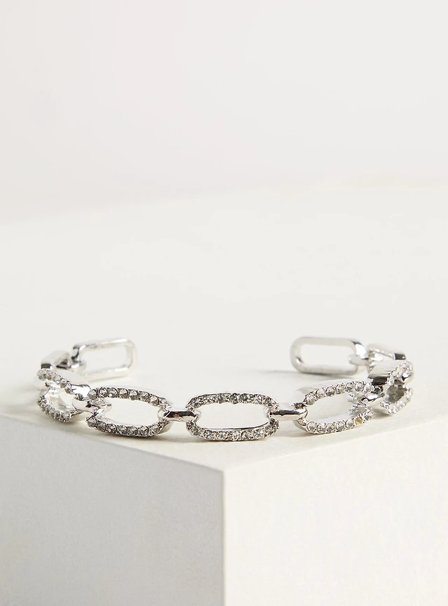 Pave Cubic Zirconia Hinge Bangle in Sterling Silver