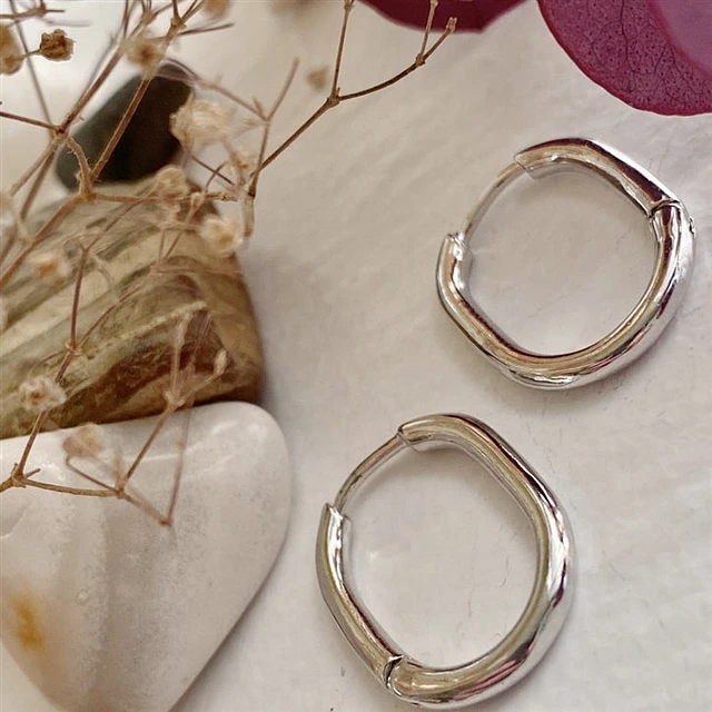 Pendientes de aro finos y oblongos con bisagra Lucille en plata