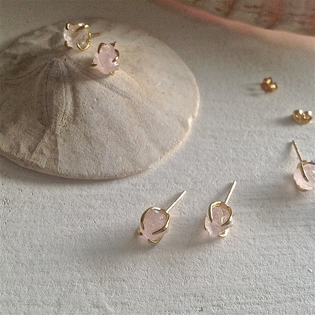Pendientes Vanessa de Cuarzo Rosa Crudo en Oro Vermeil