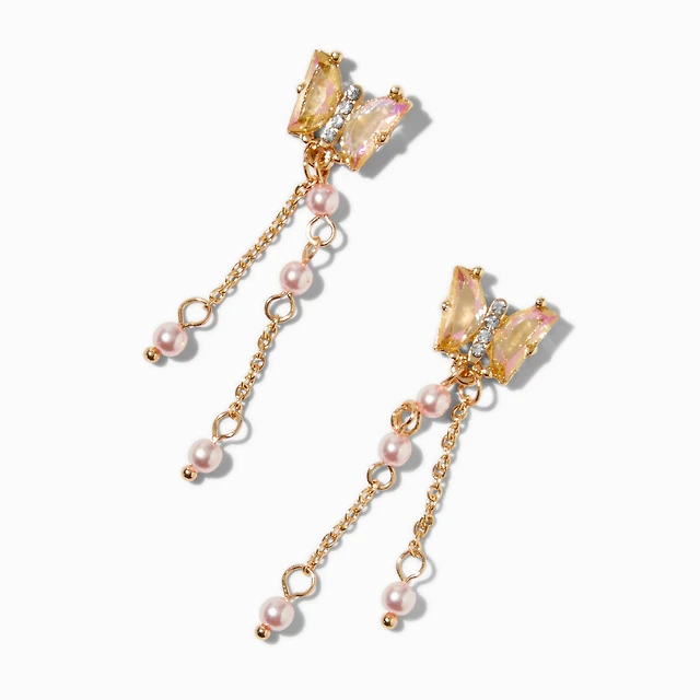 Ardene Rose & Pearl Drop Earrings in Light Pink | Stainless Steel