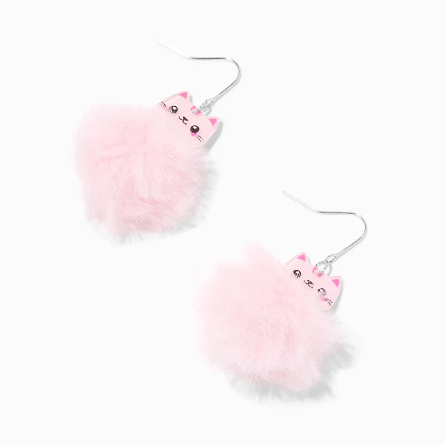 Pink Cat Pom Pom 1.5" Drop Earrings