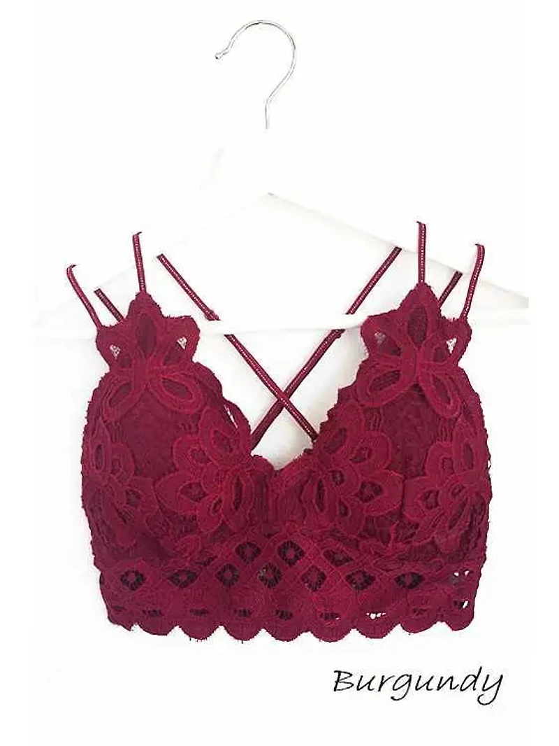 Plus Size Scalloped Lace Cami BraletteBurgundy60% Nylon, 40% CottonXL: 34D,36D,38C,38D,40B,40C,42BXXL: 38D,40D,42C,42D,44CAdjustable Bra StrapsMade In China