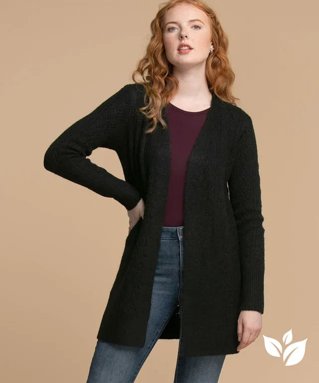 Hacci Open Cardigan with Roll-Up Sleeves and Side Slits