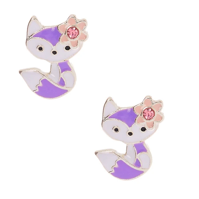 Child's Pink, Purple and Lavender Crystal Butterfly Enamel Stud Earrings Set in Sterling Silver