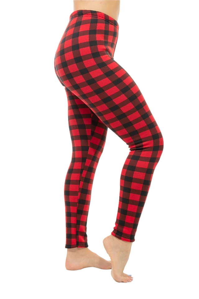 Blue Plaid Houndstooth - Cozy Lined Leggings