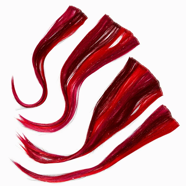 Red Tinsel Faux Hair Clip In Extensions - 4 Pack