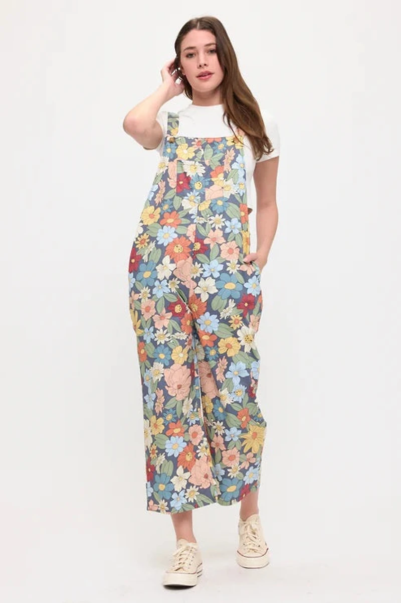 Retro Flowers Bouquet Print OverallsSide Pockets100% Cotton